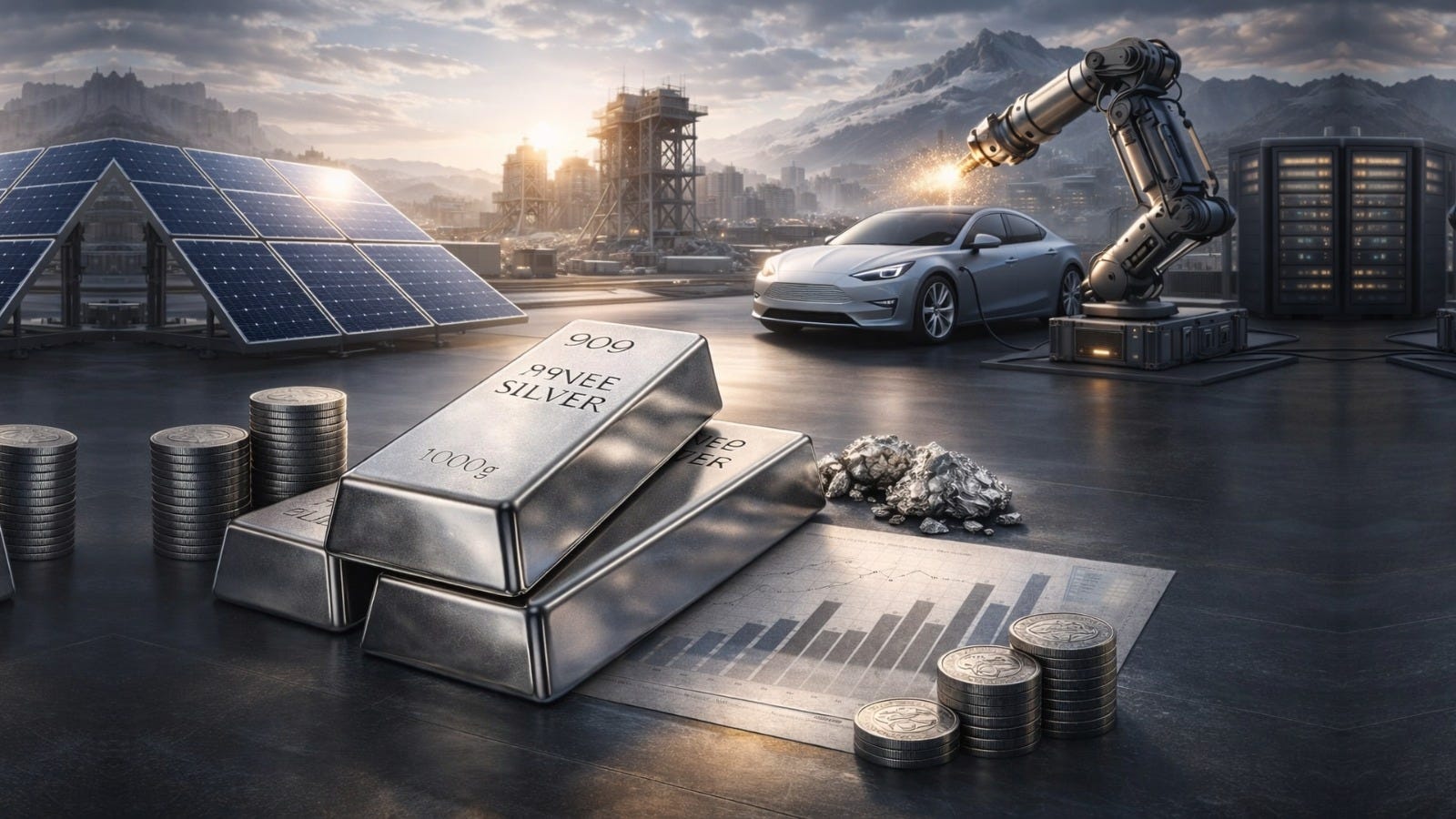 AI infrastructure (data center power demand up 5,252% since 2000), electric vehicle transition (EVs using 67-79% more silver than combustion engines), and renewable energy buildout (solar consumption tripling from 54 million ounces in 2014 to 197.6 million in 2024). They’re all accelerating at once.