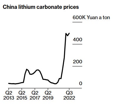 Lithium offers a recent precedent. In 2021, lithium carbonate traded near $36,514 per tonne. By early 2022, prices surged past $50,000 as EV demand exploded and supply lagged. Later that year, lithium went past $70,000 per tonne. Bloomberg estimated that the spot value of global lithium consumption jumped from $3 billion in 2020 to $35 billion in 2022.