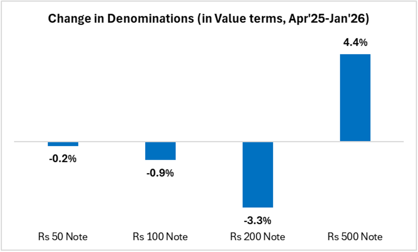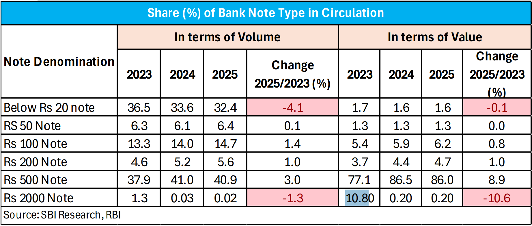 Start with the most obvious trigger. In May 2023, the RBI announced the withdrawal of the ₹2000 note. By end-March 2025, the ₹2000 note had gone from holding 10.8% of currency value to a mere 0.2%. Now, something had to fill that vacuum.