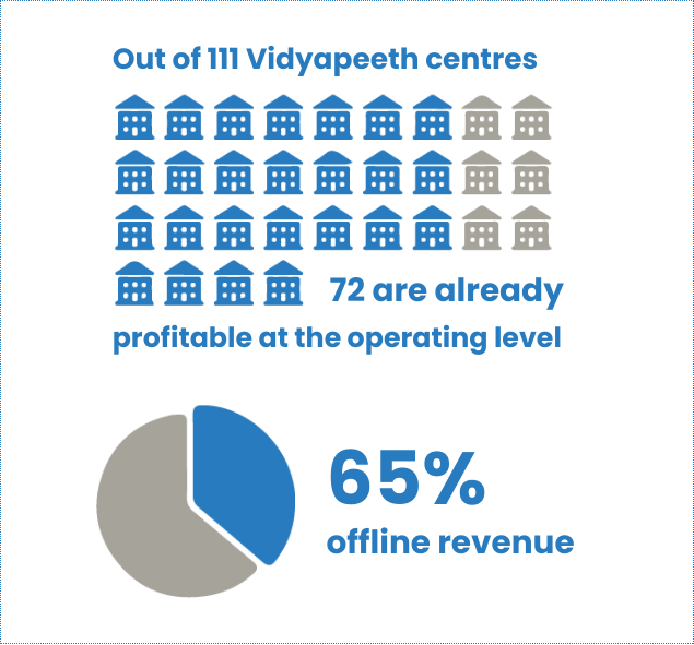 Of the 111 core Vidyapeeth centres focused on JEE and NEET preparation, 72 are already profitable at the operating level. These contribute about 65% of offline revenue. For a business that only launched physical operations three and a half years ago, that’s an impressive ramp-up. The ARPU (Average Revenue Per User) of this segment was ₹21,985 for H1FY26.