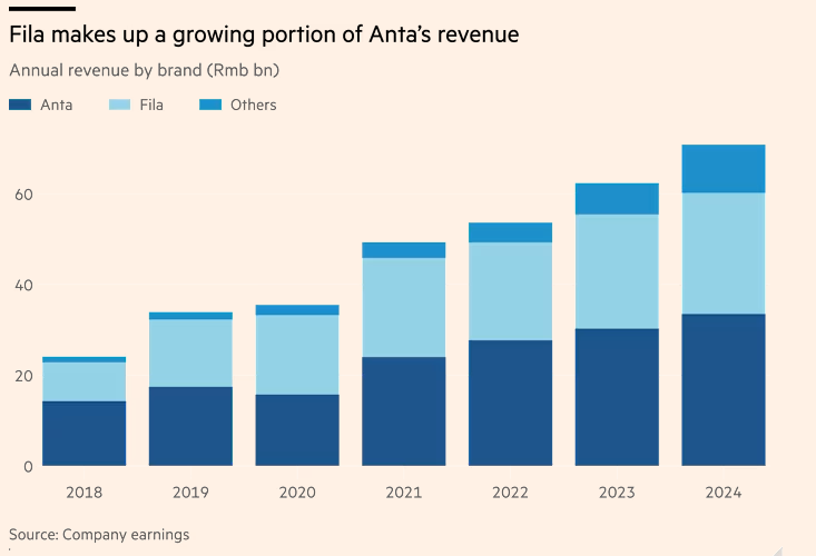By 2021, Fila China’s revenue exceeded ¥20 billion. A brand bought for $48 million now contributes nearly 38% of Anta Group’s total revenue.