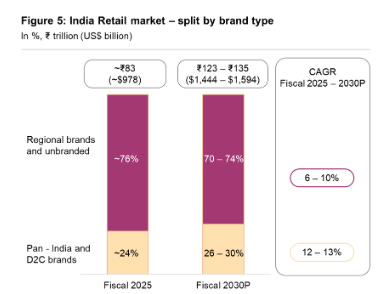 Economics compound the problem. Average order values in India run 2-3 times lower than China’s. When customers are buying ₹200 kurtis with thin reseller margins, and platforms must absorb delivery costs and handle high return rates, unit economics become punishing. India’s retail landscape also remains extraordinarily fragmented. Regional brands and unbranded products account for over 75% of total retail spending. Standardising offerings the way Chinese platforms do is nearly impossible.